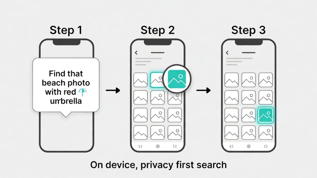 Siri will then search the Photos app, look for images matching “friends,” “beach,” “summer,” and “red umbrella,” and return the right picture without uploading it to Apple’s servers. This kind of natural‑language search across personal data is a huge leap from today’s Siri, which mostly only understands direct commands.