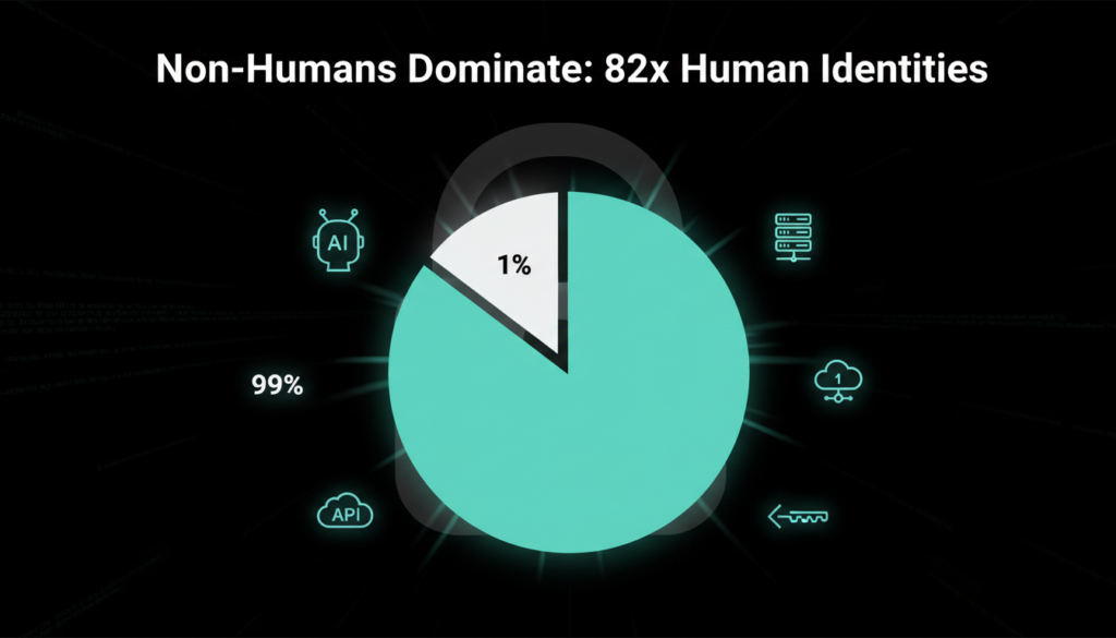 Non human identities now outnumber humans by ratios as high as 82 to 1. A single AI customer service agent alone might require 15-20 distinct machine identities, overwhelming legacy systems built for human users.