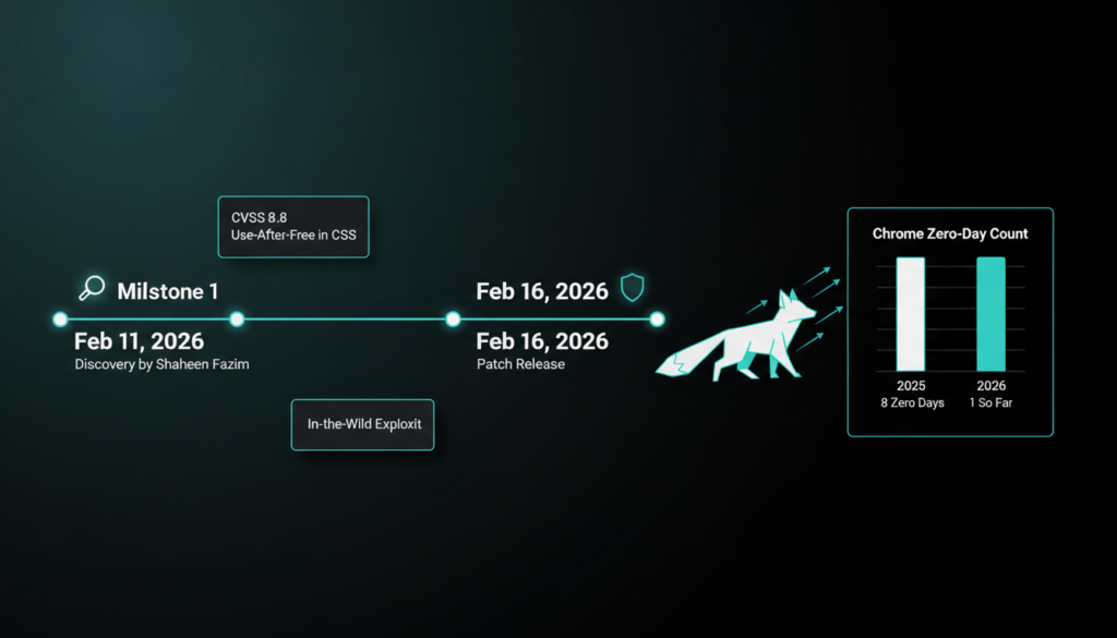 Google just dropped a critical security update for Chrome, tackling a zero day vulnerability that’s already being weaponized in realworld attacks. Tracked as CVE-2026-2441, this flaw has a CVSS score of 8.8, marking it high severity. Discovered by security researcher Shaheen Fazim on February 11, 2026, it’s a “use after free” bug in the browser’s CSS handling. In simple terms, this means attackers could craft malicious HTML pages to execute arbitrary code within Chrome’s sandbox, potentially bypassing protections and stealing data or installing malware.