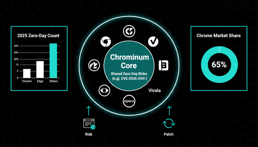 Why the focus on browsers? They’re everywhere desktops, mobiles, even embedded systems and handle untrusted web content. Attackers love them for “drive by downloads,” where no user interaction is needed beyond loading a page. Google’s Threat Analysis Group (TAG) noted in their 2025 report that state-sponsored groups exploited 10+ browser flaws for surveillance, often chaining zero days with social engineering. Chromium’s open source nature speeds fixes but also exposes code to scrutiny; forks like Brave and Vivaldi inherit the same risks until patched.