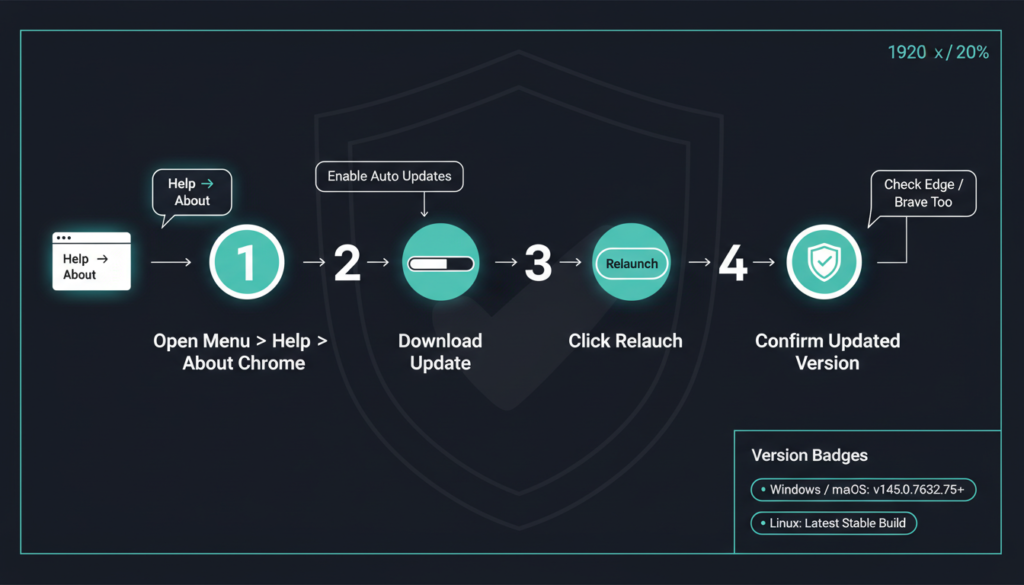 Act fast: Update Chrome to version 145.0.7632.75/.76 on Windows/macOS or 144.0.7559.75 on Linux. It’s simple head to the three dot menu, select Help > About Google Chrome, and hit Relaunch. The update auto-downloads if you’re online. Chromium users (Edge, Brave, Opera, Vivaldi) should check vendor sites for patches; Microsoft Edge, for instance, syncs closely with Chrome releases.