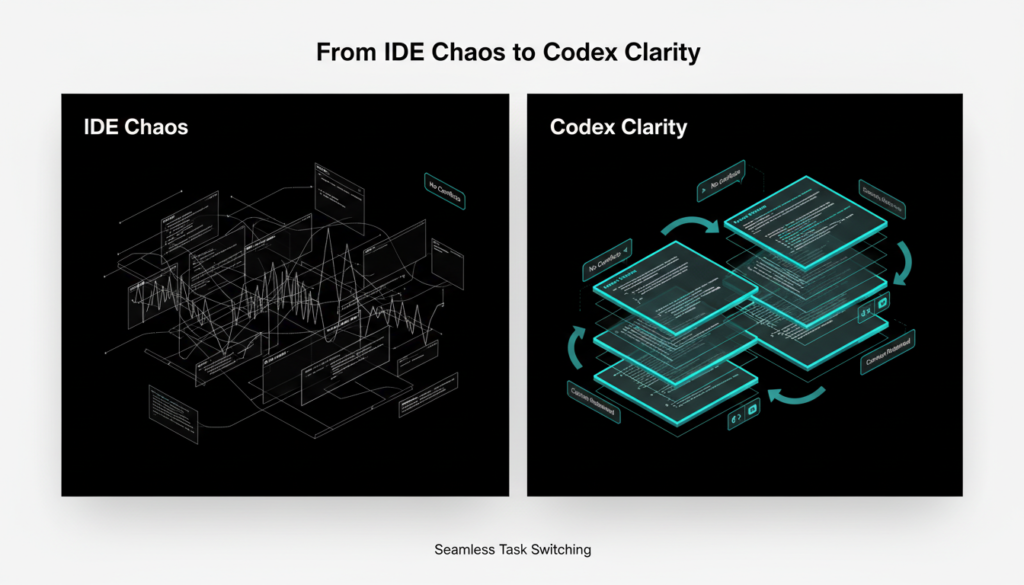 Local environments define setup scripts and actions, while IDE sync shares context across sessions. Developers report 2x faster iteration on features, bugs, and refactors thanks to this parallel power.