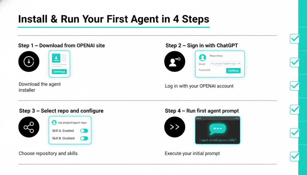 Configure environments next: define setup scripts, local tools, and default skills. Test with a simple prompt like “refactor this module for performance” to verify agent threads spin up correctly. Import existing skills from the open source repo or build your first automation for daily tasks.