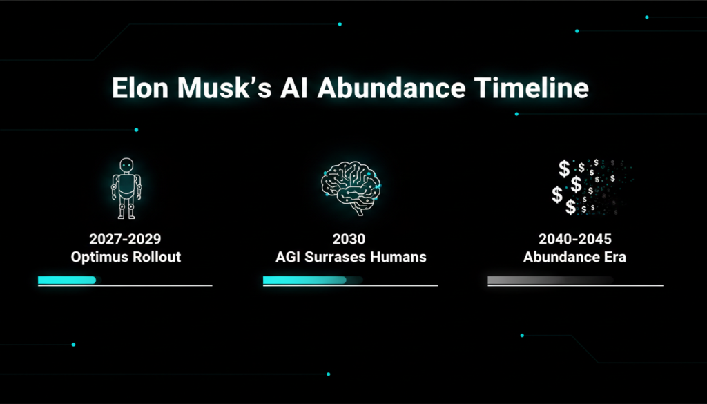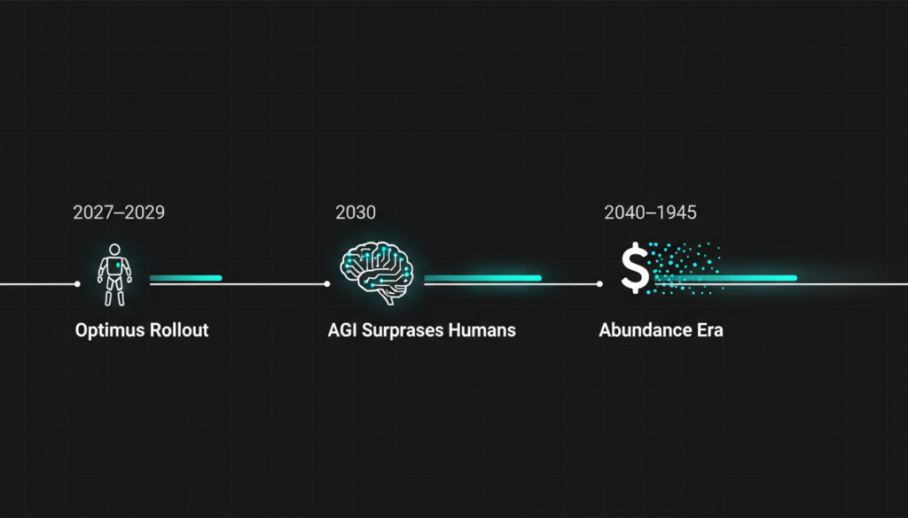 Musk’s timelines are famously optimistic. He now eyes AGI by 2030 and Optimus in homes by 2027-2029, per Tesla’s 2025 updates. If on track, abundance hits mid 2040sdisrupting careers now, not in 2100. Critics like Andrew Ng highlight delays from chip shortages, but Musk counters with xAI’s Memphis supercluster, training Grok models at unprecedented scale.