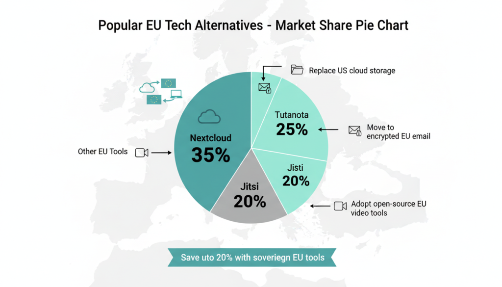 • Alternatives Rising: Gaia X cloud, Nextcloud, Tutanota gain traction; 40% global firms eye sovereign tech by 2027 (Forrester).