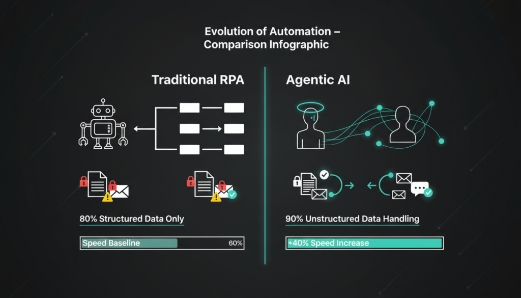 Take a credit agreement: you might extract 30-40 nuanced “answers,” not just raw data points. Brian Halpin, Managing Director of Automation at SS&C Blue Prism, emphasizes the reasoning power of large language models (LLMs) here. According to Gartner’s 2025 Magic Quadrant for RPA, 70% of enterprises now face “automation plateaus” where RPA covers only 20-30% of processes due to this variability, pushing firms toward hybrid AI solutions.