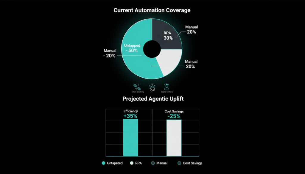 LLMs hallucinate, models drift over time, and swapping underlying tech alters outputs. Halpin predicts full agentic workflows aren’t ready yet companies need maturity first. Forrester’s 2025 RPA report echoes this, forecasting that by 2028, 50% of enterprises will deploy agentic systems, but only after addressing “drift risks” via guardrails, which could add 15-20% to implementation costs initially.