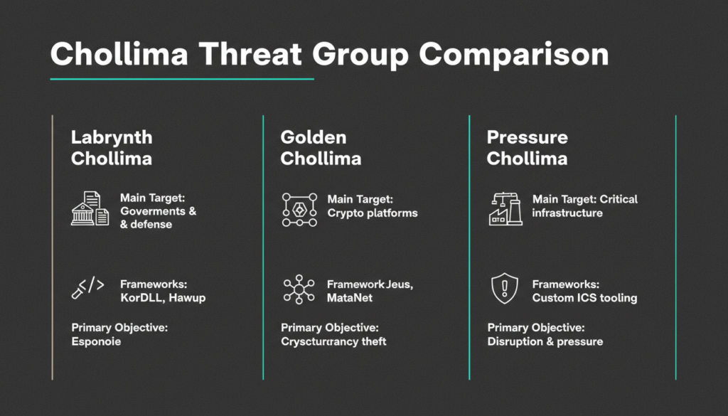 For organizations around the world, this evolution of Labyrinth Chollima into three more clearly defined units is a strong signal that state backed cyber programs are becoming more specialized and professional. Defense, manufacturing, and infrastructure companies must assume that zero day exploitation and bespoke spear-phishing are persistent threats. Crypto exchanges, DeFi projects, and fintech startups should operate on the assumption that they are attractive and active targets for both Golden and Pressure Chollima. From a defensive standpoint, relying on broad labels like “Lazarus” is no longer sufficient. Security teams need to track the specific tactics, techniques, and procedures, as well as the malware frameworks Hoplight, Jeus, MataNet, and TwoPence associated with each cluster. This more granular understanding supports better threat modeling, more accurate detection rules, and prioritized patching and monitoring strategies in an era where financially motivated and espionage-driven campaigns often come from the same state-backed ecosystem.