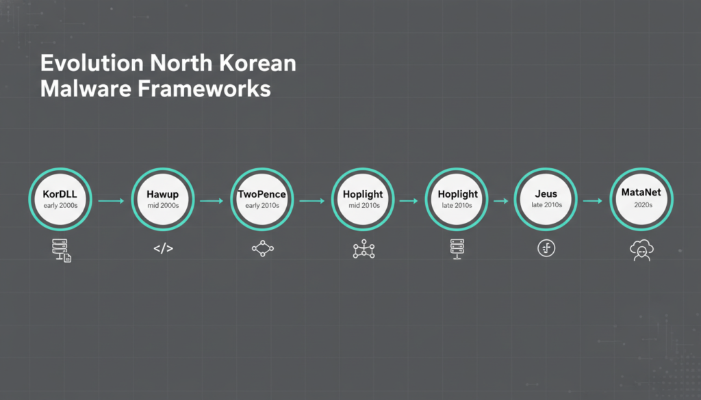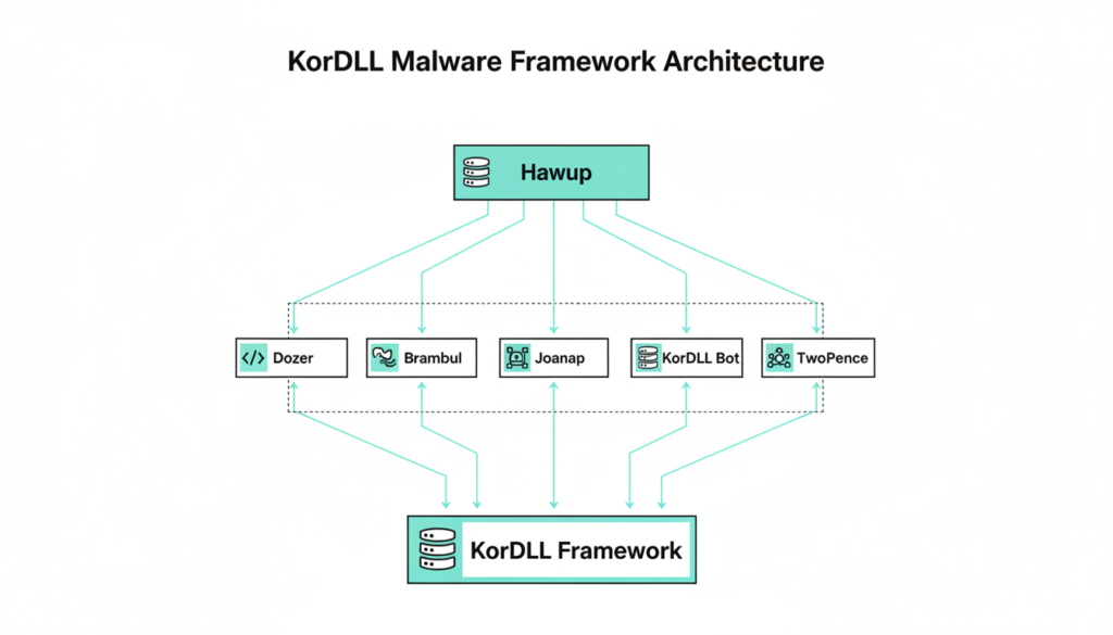 The technical roots of Labyrinth Chollima go back to a shared malware framework known as KorDLL, observed in the wild between 2009 and 2015. KorDLL operated like a development toolkit for North Korean operators, offering implant templates, built in command and control (C2) communication protocols, reusable libraries for common attacker tasks, and code for obfuscation and evasion. From this base, several well known malware families emerged, such as Dozer, Brambul, Joanap, KorDLL Bot, and Koredos. These families played key roles in early North Korean campaigns against financial institutions, governments, and critical infrastructure around the world. Over time, KorDLL evolved into more advanced frameworks named Hawup and TwoPence, which represented generational upgrades. This evolution led researchers to distinguish two related clusters: Labyrinth Chollima, associated mainly with the Hawup framework, and Stardust Chollima, associated with TwoPence and its descendants.