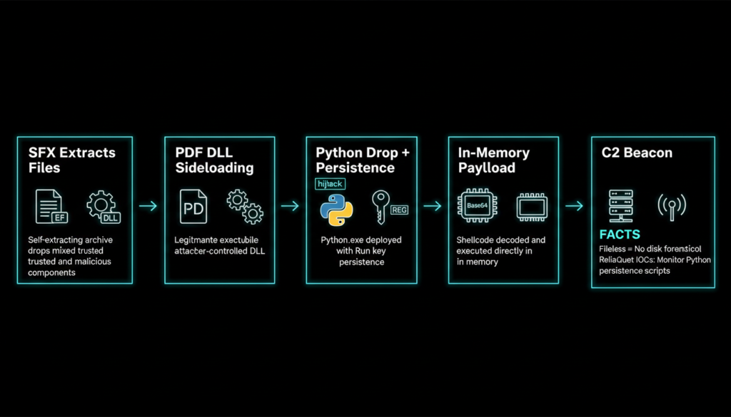 Cybersecurity experts at ReliaQuest spotted a phishing scam using a twisted open source Python script. Attackers slide into LinkedIn DMs of executives, build rapport, then trick them into grabbing a booby trapped WinRAR archive. Once opened, it unpacks a legit PDF reader, a shady DLL, a portable Python interpreter, and a fake RAR decoy.