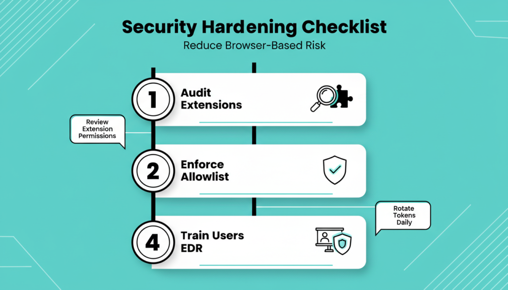 In enterprises, enforce allowlists via Group Policy, Microsoft Intune, or tools like Chrome Enterprise. Key tactics include: