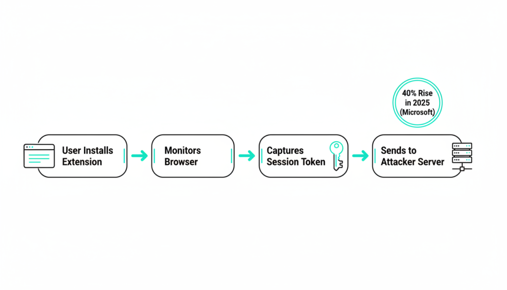Microsoft’s 2025 Digital Defense Report notes session hijacking has surged 40% year over year, often via extensions that request broad “read and change all site data” permissions.