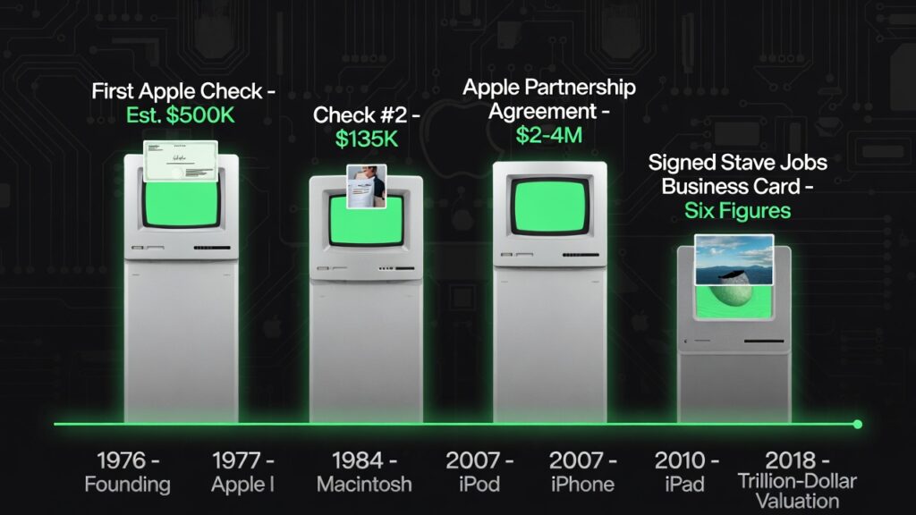 Early Apple artifacts, especially Jobs linked ones, fetch huge sums. Jobs rarely signed items, making his autograph ultra valuable; even business cards hit six figures. “There’s an emotional connection,” says RR’s  Bobby Livingston. Collectors starting tech firms adore Apple lore. Lonnie Mimms, owner of check #2, calls Jobs Wozniak’s signature the “highest rarity.”