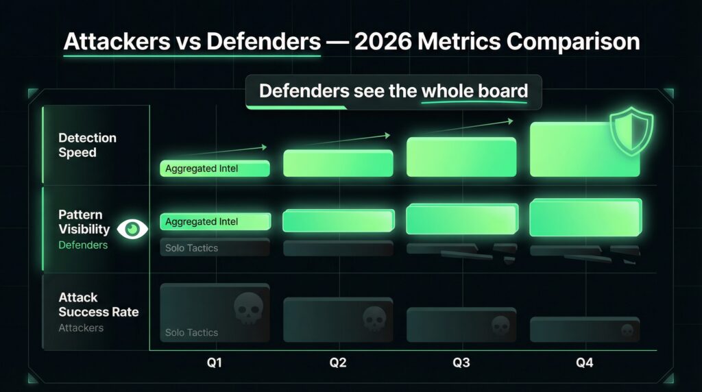 In 2026, defenders will be faster than attackers. Threats get worse as AI gets bigger, but security personnel have the upper hand because they can see everything. Defenders can discover strategies early by combining patterns from thousands of intrusions, unlike lone hackers who don’t have much imagination. One expert argues, “This cross actor view lets us predict and stop attacks before they hit.” Cyber resilience will be driven by intelligence at the network level. AI is great at finding patterns in huge datasets, which makes it easier to recognize threats and patch vulnerabilities in real time. It helps meet regulatory requirements, lowers the number of breaches, and makes teams’ jobs easier by isolating rogue devices and safeguarding setups.