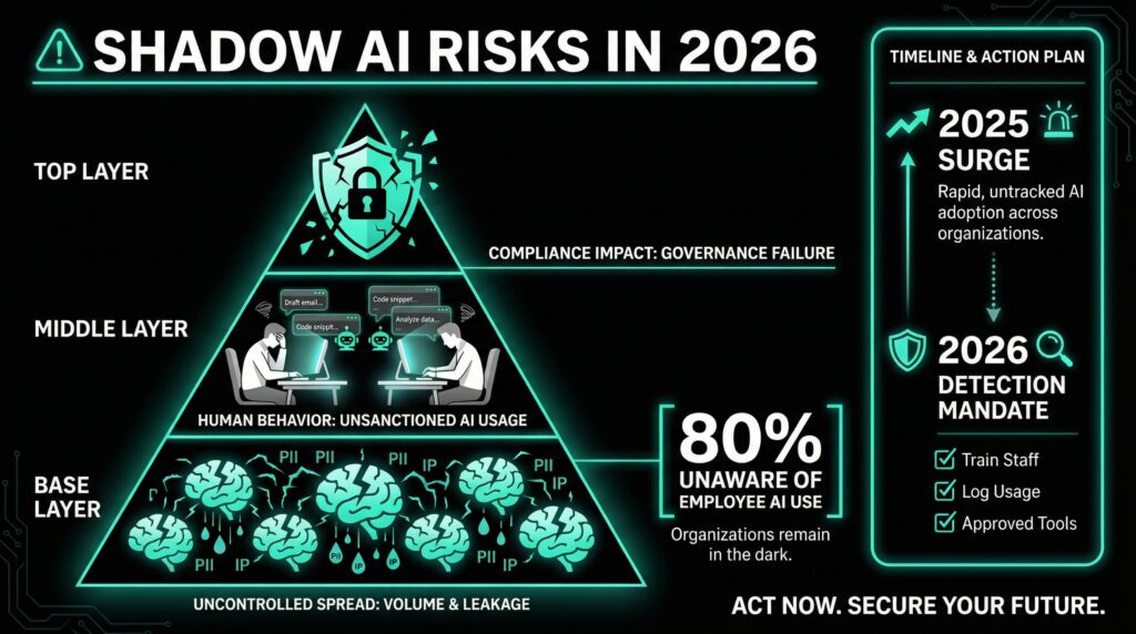 Shadow AI unsanctioned tools will surge, risking data leaks and IP theft. Employees frustrated by vague AI mandates grab tools like ChatGPT without guidance, feeding sensitive info into unmonitored systems. Detection becomes critical: set guidelines, train staff, and provide approved access first. Beyond public tools, shadow models from 2023-2025 create invisible attack surfaces with unchecked data flows. Organizations must register AI workflows, enforce governance, and offer secure alternatives. Embed policies in dev tools and log usage to balance speed and safety.