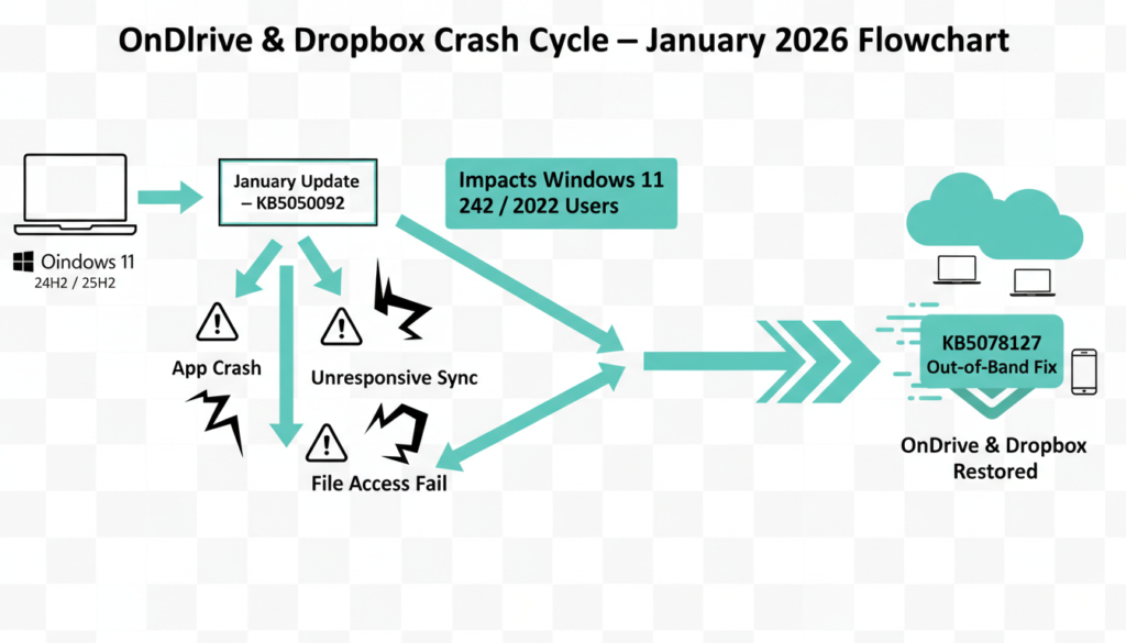 Microsoft’s first Windows 11 update of 2026 became a major headache, requiring three emergency out of band patches within weeks. The January 13 security update (KB5074109) triggered shutdown hangs on 23H2 Enterprise/IoT systems, OneDrive/Dropbox/Outlook crashes on 24H2/25H2 builds, plus remote desktop failures fixed by KB5078127, KB5078132, and earlier January 17 patches.